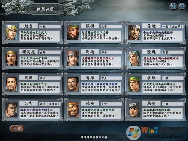 增加了221年6月 書生現(xiàn),蜀主墜夷陵、253年2月 繼遺志,孤將挽狂瀾等4個全新劇本和大量的新事件。四個劇本:包括211年曹操與馬超渭水之戰(zhàn),221年陸遜破劉備彝陵之戰(zhàn),253年開始的姜維北伐以及一個將三國英杰集合到一個時期的虛擬劇本。同時,增加了大量的新事件,這些事件有些發(fā)生在大地圖,也有些會發(fā)生在史實的戰(zhàn)役中。