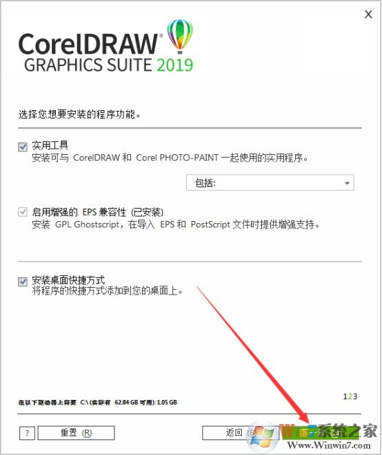 10、我們只勾選CDR2019安裝就行,其他都是輔助工具,大家可以根據(jù)自己的需求選擇安裝