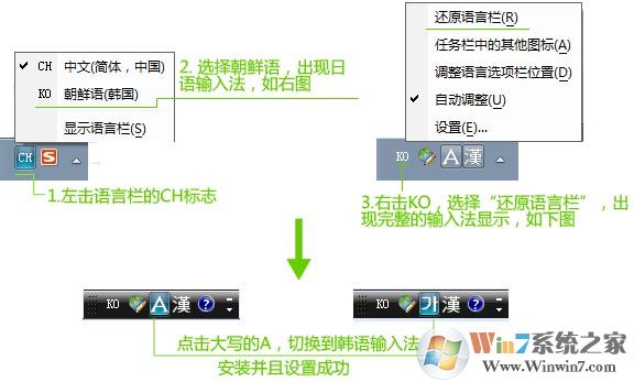 1)如果安裝之后,點擊語音欄, 并沒有“KO 朝鮮語(韓國)”這種語言可勾選,則做以下操作: