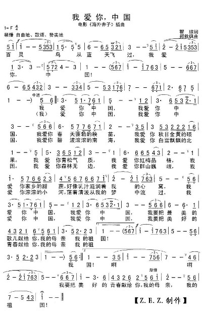 《我愛(ài)你,中國(guó)》是瞿琮作詞,鄭秋楓作曲,葉佩英原唱的一首愛(ài)國(guó)主義歌曲,是1979年電影《海外赤子》的插曲。小編給大家準(zhǔn)備了該歌曲的原唱MP3外加簡(jiǎn)譜,喜歡音樂(lè)的朋友趕緊下載吧!