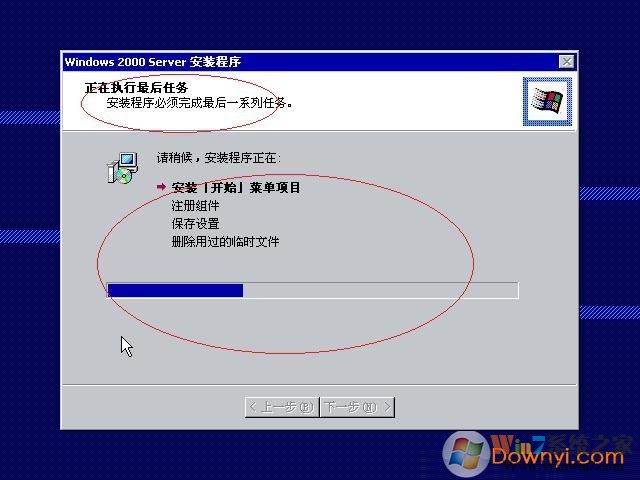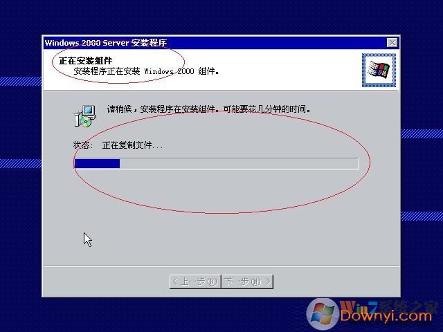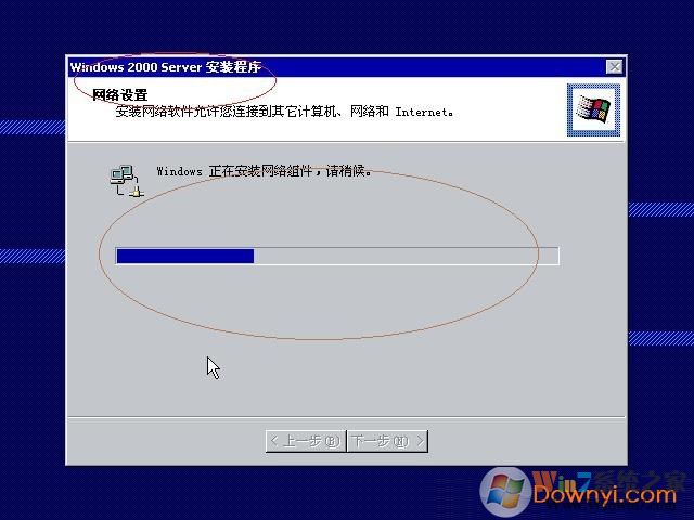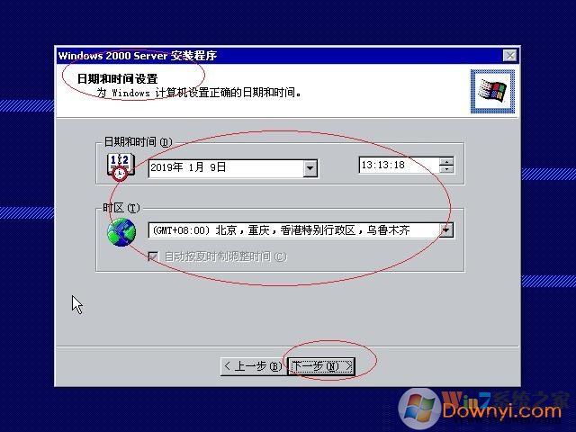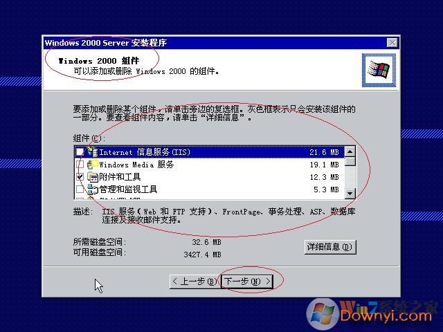 第六步 如圖所示,選擇windows 2000組件。完成日期和時(shí)間設(shè)置,點(diǎn)擊"下一步"按鈕。