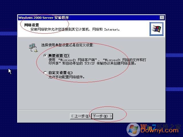 第七步 網(wǎng)絡(luò)設(shè)置選擇典型設(shè)置,如圖所示。輸入工作組名稱,點(diǎn)擊"下一步"按鈕。