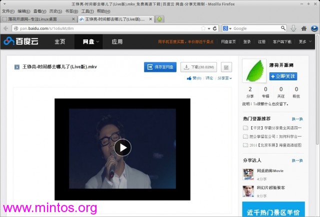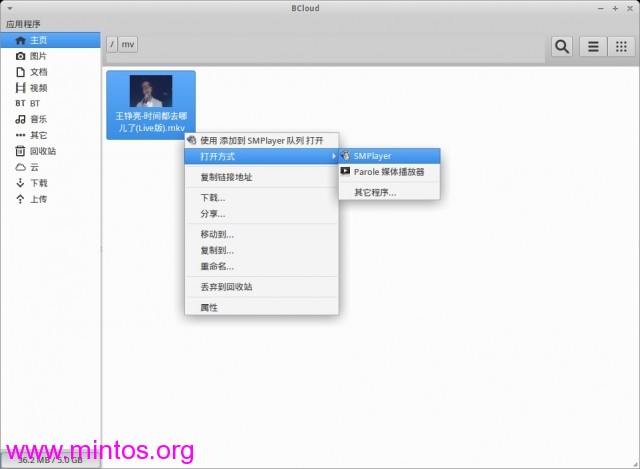 再來測試一下 Bcloud 的流媒體功能。簡單而言,就是放在百度云里的音頻視頻文件,可以在 Bcloud 客戶端中使用本地播放器進行在線播放,無需訪問網(wǎng)頁。注意:有些播放器不支持流媒體。推薦 VLC 和 Mplayer 相關播放器(Gnome Mplayer 或 SMplayer)