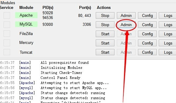 1.apache 和 mysql變綠后,這應(yīng)該都會(huì)了。點(diǎn)擊mysql后的admin