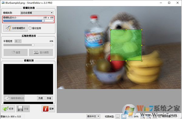 2.通過拖拉操作在原圖中選擇一個小區(qū)域,手動設(shè)置“模糊軌跡大小”。所設(shè)置的大小應(yīng)略大千賣際運動軌邊的大小。