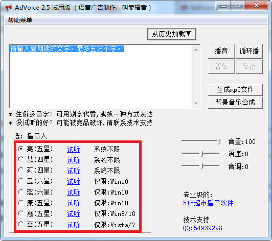 AdVoice是一款語音廣告制作、叫賣播音軟件,可以錄制并重復(fù)播放語音,適用于各種需要播音的大型場合,支持多人播音,發(fā)音清晰,接近真人。而且簡單易用,可以循環(huán)播放和生成MP3,添加背景音樂等。是你店面促銷的好幫手!