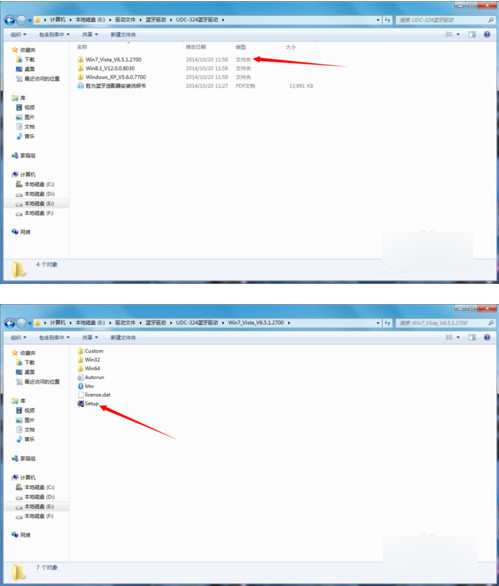 首先打開(kāi)這個(gè)藍(lán)牙適配器附帶的驅(qū)動(dòng)光盤(pán),選擇WIN7文件夾打開(kāi),雙擊運(yùn)行文件夾里面的Setup.exe安裝運(yùn)行程序。(切記在安裝驅(qū)動(dòng)之前一定不要把藍(lán)牙適配器插入電腦,一定要先動(dòng)行驅(qū)動(dòng)程序)