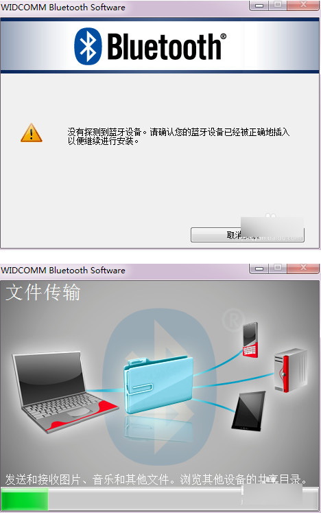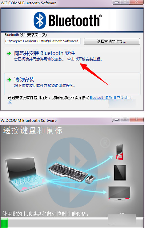 點(diǎn)擊同意安裝,程序開(kāi)始運(yùn)行,稍等一會(huì),系統(tǒng)會(huì)提示沒(méi)有檢測(cè)到藍(lán)牙設(shè)備,這個(gè)時(shí)候插入藍(lán)牙適配器(一定要等到提示的時(shí)候再插入),系統(tǒng)自動(dòng)識(shí)別,繼續(xù)運(yùn)行安裝,直到完成。