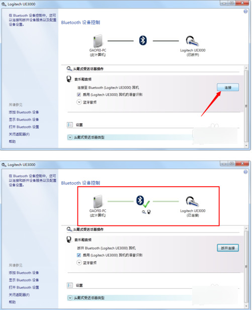 等服務(wù)全部安裝完畢,系統(tǒng)會(huì)彈出一個(gè)控制的對(duì)話(huà)框,如果沒(méi)有彈出可以在搜索到的耳機(jī)圖標(biāo)上面雙擊或者右鍵點(diǎn)擊控制,點(diǎn)擊連接,就可以了。
