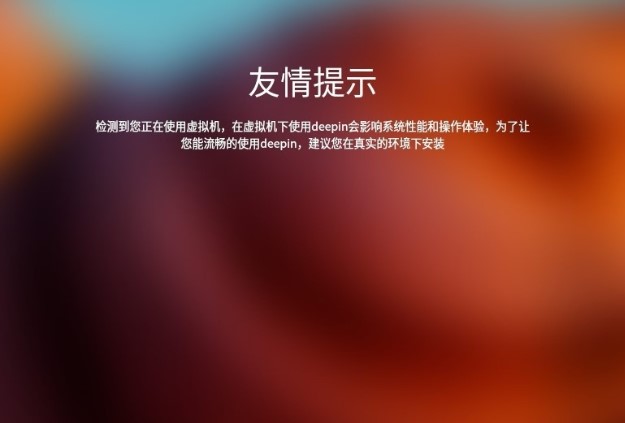2.因?yàn)槭窃谔摂M機(jī)中進(jìn)行UOS的安裝,會(huì)出現(xiàn)下面的提示,可以忽略進(jìn)行【繼續(xù)安裝】