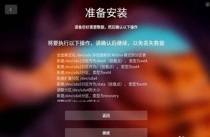 4.開(kāi)始準(zhǔn)備安裝,確認(rèn)硬盤(pán)的選擇無(wú)誤后點(diǎn)擊【繼續(xù)】開(kāi)始安裝。