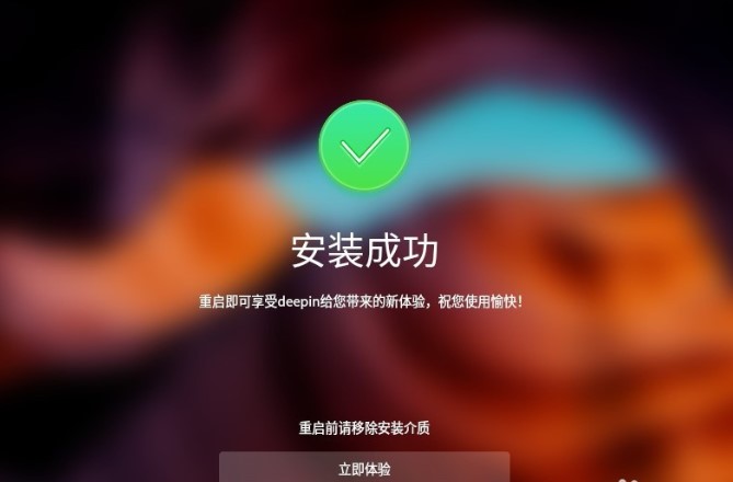 6.上面的步驟完成以后出現(xiàn)【安裝成功】的提示畫(huà)面。移除安裝的介質(zhì)或者ISO文件后,點(diǎn)擊【立即體驗(yàn)】