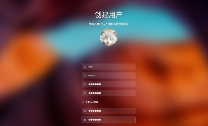 8.接下來(lái)設(shè)置登陸的用戶名,電腦名稱,登陸密碼。如果需要設(shè)置root帳號(hào)的密碼可以勾選下面的【設(shè)置root密碼】的選項(xiàng),點(diǎn)擊【下一步】繼續(xù)。