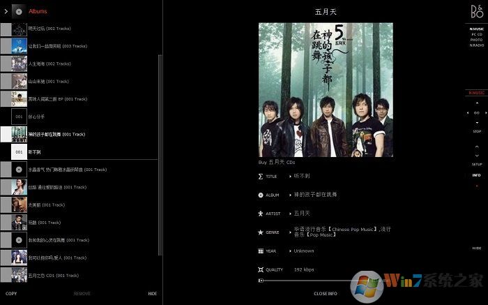 3、BeoPlayer的界面設(shè)計(jì)非常獨(dú)特,超出了我們對(duì)一般播放軟件的想象。操作面板隱藏在屏幕右側(cè),操作界面完全打開(kāi)之后,它會(huì)覆蓋整個(gè)桌面,并且應(yīng)用了動(dòng)態(tài)的拉開(kāi)式。第一次運(yùn)行時(shí),它會(huì)為您掃描硬盤,搜索電腦上的音樂(lè),而后列出仔細(xì)清單,您可以根據(jù)歌手、曲目及文件名稱等作順序排列。Beoplayer的播放音質(zhì)幾乎無(wú)可挑剔,因此受到很多音樂(lè)發(fā)燒友的青睞。