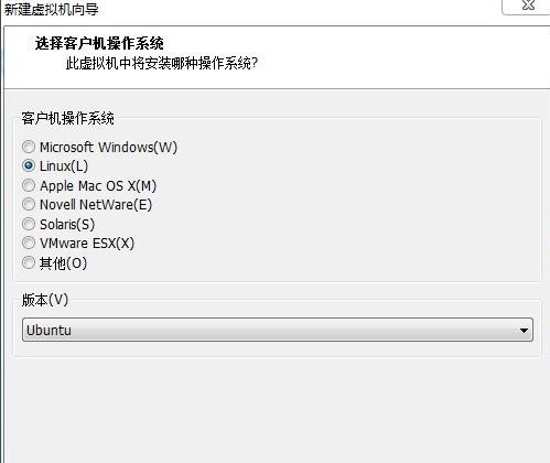 3.這里客戶機(jī)操作系統(tǒng)選擇linux,版本因?yàn)槲矣玫镊梓胧?2位的,所以選擇ubuntu,64位的系統(tǒng)應(yīng)選擇ubuntu64