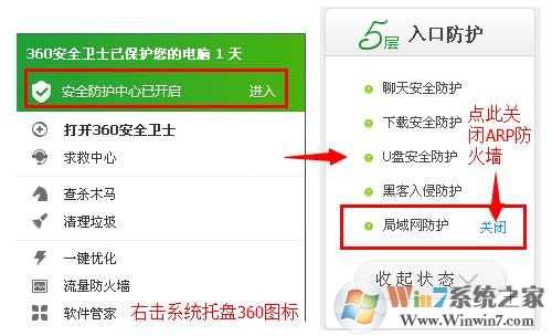 關(guān)閉360ARP防火墻、或是其它安全軟件的防火墻