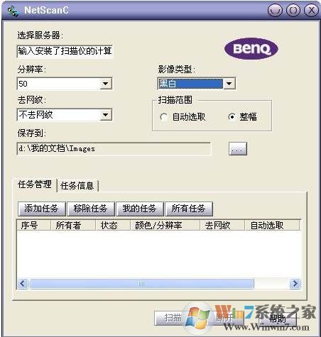 在客戶端只要安裝NetScan的掃描儀共享軟件客戶端程序,安裝好后點(diǎn)擊菜單“開(kāi)始→程序→BenQ NetScan→使用掃描儀”,然后在打開(kāi)的界面上來(lái)進(jìn)行設(shè)置:
