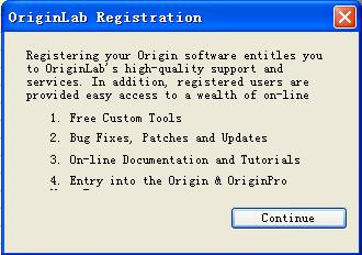 6.完成上述工作后,啟動OriginPro 8,會彈出下述對話框,點擊“Continue”繼續(xù)。
