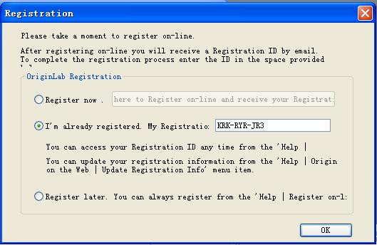 7.在下圖中選擇“I'm already registered.” ,并填入注冊號KRK-RYR-JR3,點擊OK按鈕即可。