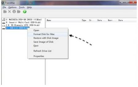 2、插入準(zhǔn)備好的U盤,U盤數(shù)據(jù)要轉(zhuǎn)移,打開TransMac,右鍵要制作啟動盤的U盤名稱,選擇“Format Disk for Mac”,將U盤格式化成Mac下的格式;