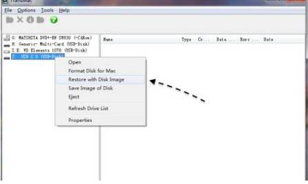 6、格式化之后,右鍵U盤選擇“Restore with Disk Image”,選擇mac os x鏡像;