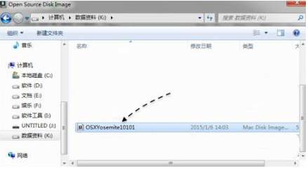 7、選擇已經(jīng)準(zhǔn)備好的OS X.dmg鏡像,點擊打開;