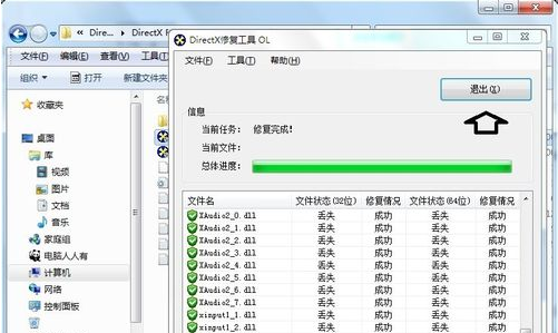 5、稍等片刻程序修復(fù)成功我們可以單擊如下圖中的【退出】按鈕退出該界面