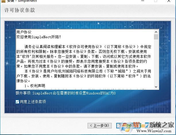 3、勾選【同意上述條款項(xiàng)】,點(diǎn)擊一下一步即可開始安裝;
