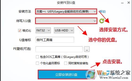 1、雙擊打開安裝,可以選擇三種安裝方式,想安裝在U盤就選擇U盤
