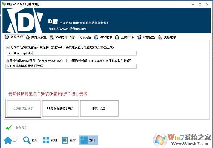 請解壓全部文件到指定目錄,如C盤或D盤 例如:d:\d_safe 之后運行 "D_Safe_Manage.exe" D盾程序,如果你的是IIS網(wǎng)站環(huán)境,請點擊“選項”頁里點擊按鈕“安裝[D盾]保護”,進行安裝,安裝時需要管理員權(quán)限.如果你的電腦不是IIS的網(wǎng)站環(huán)境,無需安裝保護,可當web查殺軟件使用。