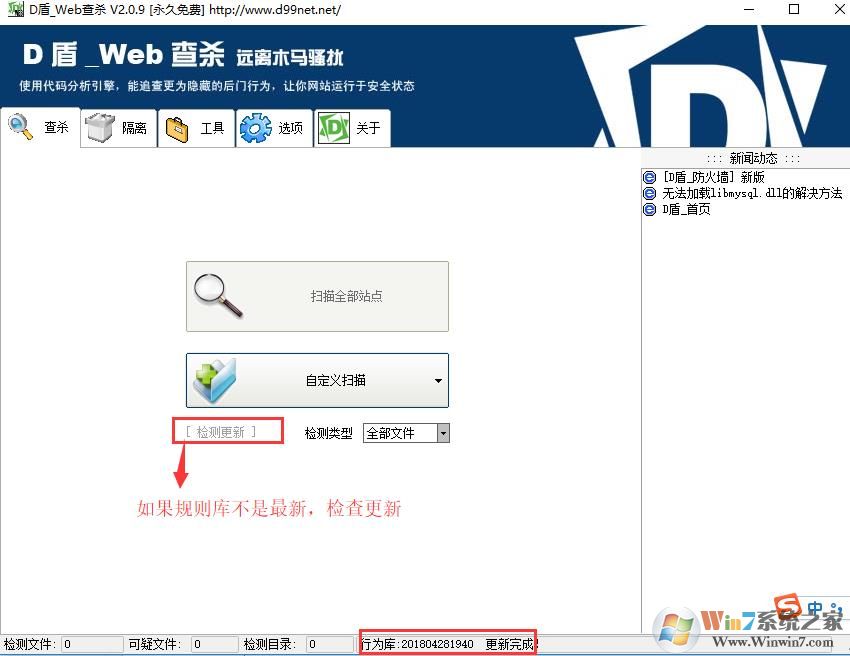 D盾查殺之前先確保規(guī)則庫是最新的,可以查殺最新的webshell后門。