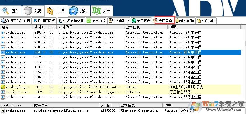 進程查看中可以看到當前正常運行的進程,而且在每個進程下面都可以看到加載的dll文件,可以作為輔助。