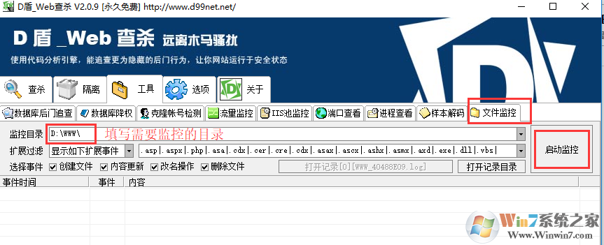 第一步:把需要監(jiān)控的目錄寫到監(jiān)控目錄欄目中并啟動監(jiān)控,如下圖: