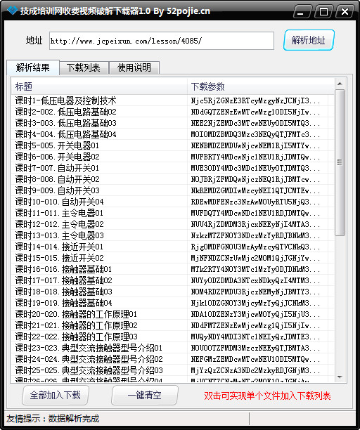 技成培訓(xùn)網(wǎng)收費(fèi)視頻破解下載器是一個(gè)針對(duì)技成培訓(xùn)網(wǎng)收費(fèi)視頻的下載工具。用戶可以輕松下載技成培訓(xùn)網(wǎng)的所有收費(fèi)視頻,讓你可以免費(fèi)收看所有技成培訓(xùn)網(wǎng)的收費(fèi)視頻!