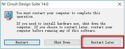 13.之后軟件會(huì)提示重啟電腦,在這里我們選中最后一項(xiàng)“Restart Later”暫不重啟。如下圖