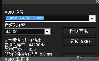 3、設(shè)置aiso驅(qū)動(dòng),在“選項(xiàng)”asio設(shè)置里選擇你的聲卡驅(qū)動(dòng)。(如果要網(wǎng)絡(luò)k歌的話需要支持跳線的聲卡,關(guān)跳線的解釋,大家可以看下我之前錄制的一個(gè)視頻,用icon聲卡演示的,這里就不重復(fù)說明啦,嘿嘿。http://qnwx.blog.163.com/blog/static/60808329201291991232704/ )