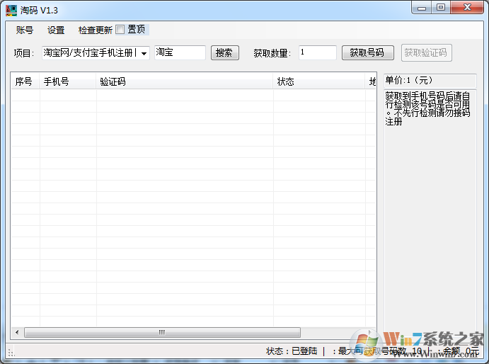 淘碼手機(jī)驗(yàn)證碼接收平臺(tái)是一款手機(jī)短信驗(yàn)證碼工具,可以快速驗(yàn)證各種網(wǎng)站、手機(jī)驗(yàn)證、手機(jī)解封等驗(yàn)證碼,一件接收自動(dòng)驗(yàn)證,強(qiáng)大的自動(dòng)識(shí)別功能,讓你解放雙手快速提高工作效率,網(wǎng)絡(luò)推廣刷錢必備!