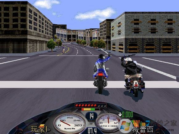 3、比賽進(jìn)行期間,按 V 鍵可查看游戲版本;按 F10 為切換/顯示/隱藏摩托車的儀表面板;小鍵盤的 + - 鍵為改變游戲背景的貼圖顏色。