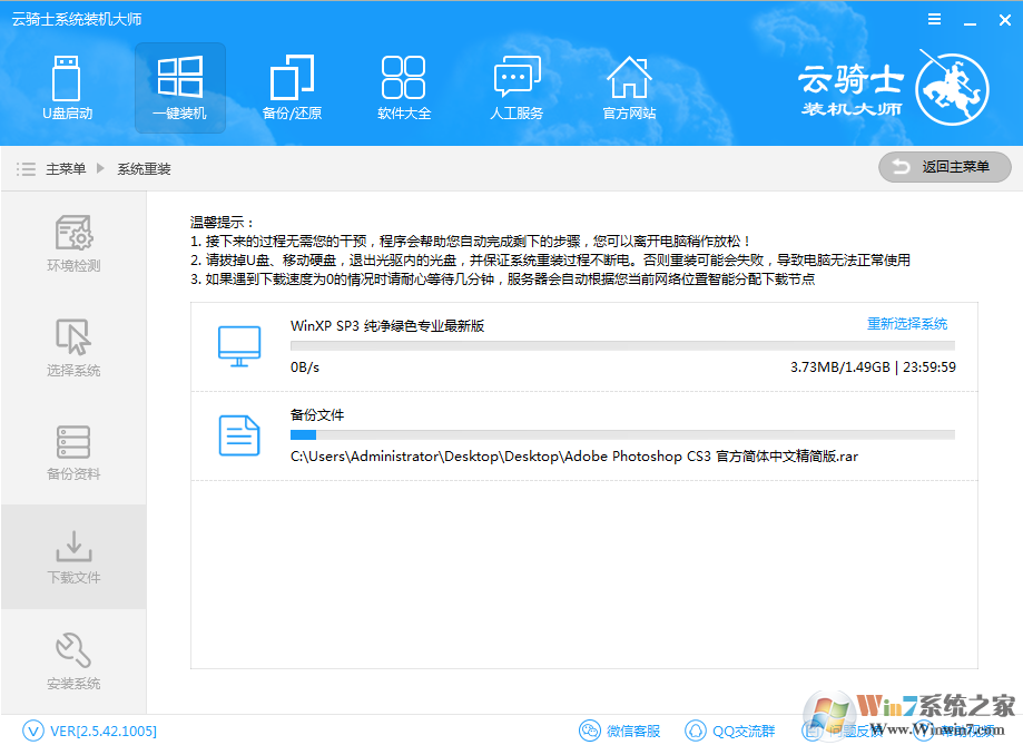 進(jìn)入“下載文件”,云騎士在為用戶提供全新系統(tǒng)下載的同時(shí)對(duì)文件進(jìn)行備份,等待完成即可。