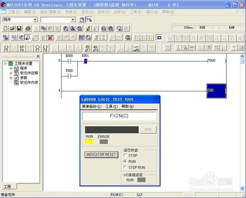 變換之后我們運行仿真程序,這時點擊“梯形圖邏輯測試”圖標,這時我們編寫的程序將傳送至“模擬PLC”。