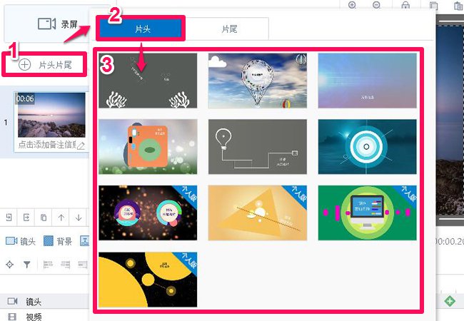 點(diǎn)擊“片頭片尾”——單擊“片頭”——單擊選擇“片頭”中的模板