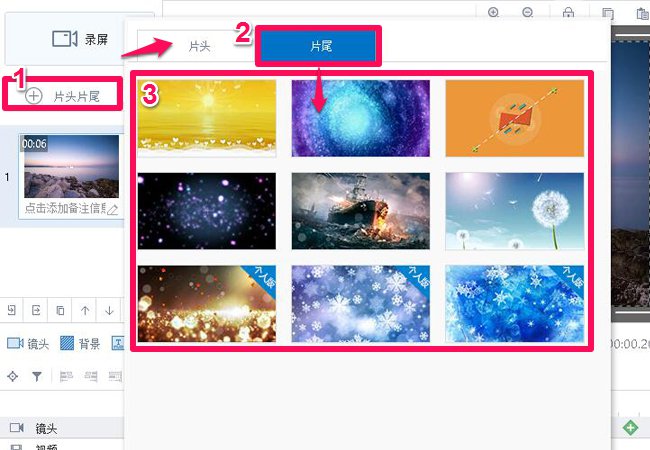 點(diǎn)擊“片頭片尾”——單擊“片尾”——單擊選擇“片尾”中的模板