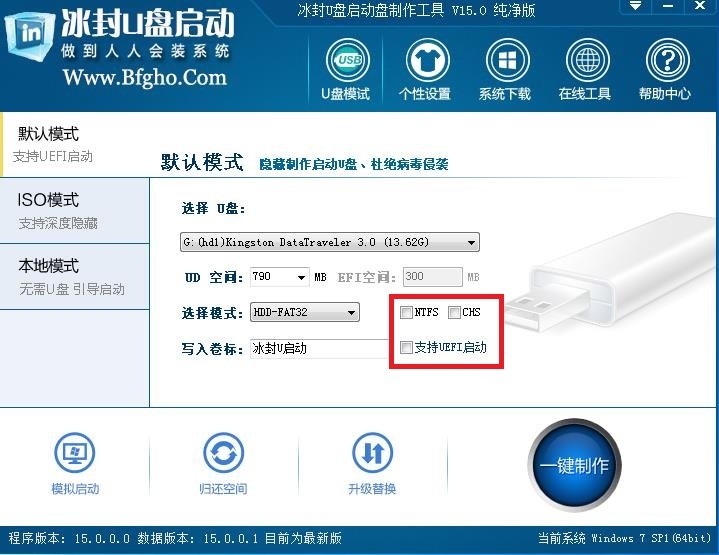 冰封u盤啟動(dòng)盤制作工具是一款全新的u盤啟動(dòng)盤制作工具,全新界面,一鍵制作,簡單易用,隨時(shí)更換系統(tǒng),無需光驅(qū),攜帶方便,讓重裝系統(tǒng)變得不在困難!