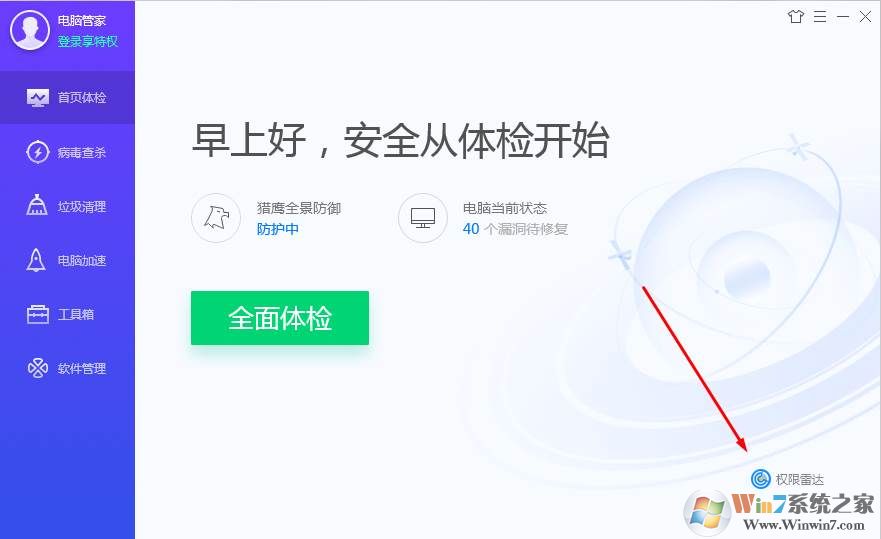 2、安裝之后可以在管家界面看到權(quán)限雷達圖標