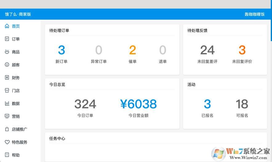 餓了么商家版電腦版可以讓餓了么商家在電腦上進(jìn)行操作,幫助商戶在后臺處理訂單,查看訂單處理情況客戶評論管理今日營業(yè)額查看,還有經(jīng)營數(shù)據(jù)分析了解商家生意怎么樣如何提高銷售業(yè)績等,商品管理支持大中小店鋪讓你能快捷管理你店鋪商品。