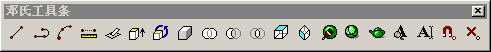 與此同時,在[工具條]中,也可設置具有個性的工具條, 圖2是筆者將常用的畫直線、多段線、圓弧、距離測量、三維面、拉伸面、旋轉面、長方體、 并集、差集、交集、俯視圖、西南等軸測視圖、材質、著色、渲染、文字樣式、單行文字, 以及目標的捕捉和不捕捉等快捷鍵,編入[鄧氏工具條]置于屏幕上端,使用非常方便。