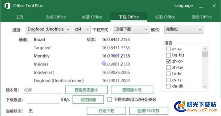 打開后點擊菜單欄的下載Office選項卡然后通道選擇DogFood,DogFood 是新版本在微軟內部的開發(fā)代號。