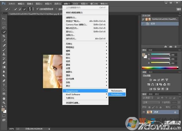 3、完成安裝,這時在PS的濾鏡菜單下就多一個選項 imagenomic / Portraiture...現(xiàn)在你就可以使用它了