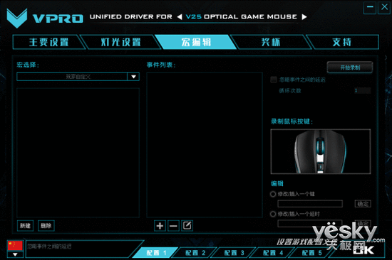 宏編輯頁(yè)面,V25設(shè)置了多款主流游戲的宏命令,游戲里面應(yīng)該已經(jīng)預(yù)設(shè)好了宏命令,可以直接調(diào)出使用。