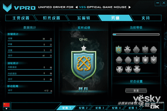 獎(jiǎng)杯頁(yè)面中,能夠統(tǒng)計(jì)鼠標(biāo)的按鍵次數(shù)及移動(dòng)距離合計(jì)等。
